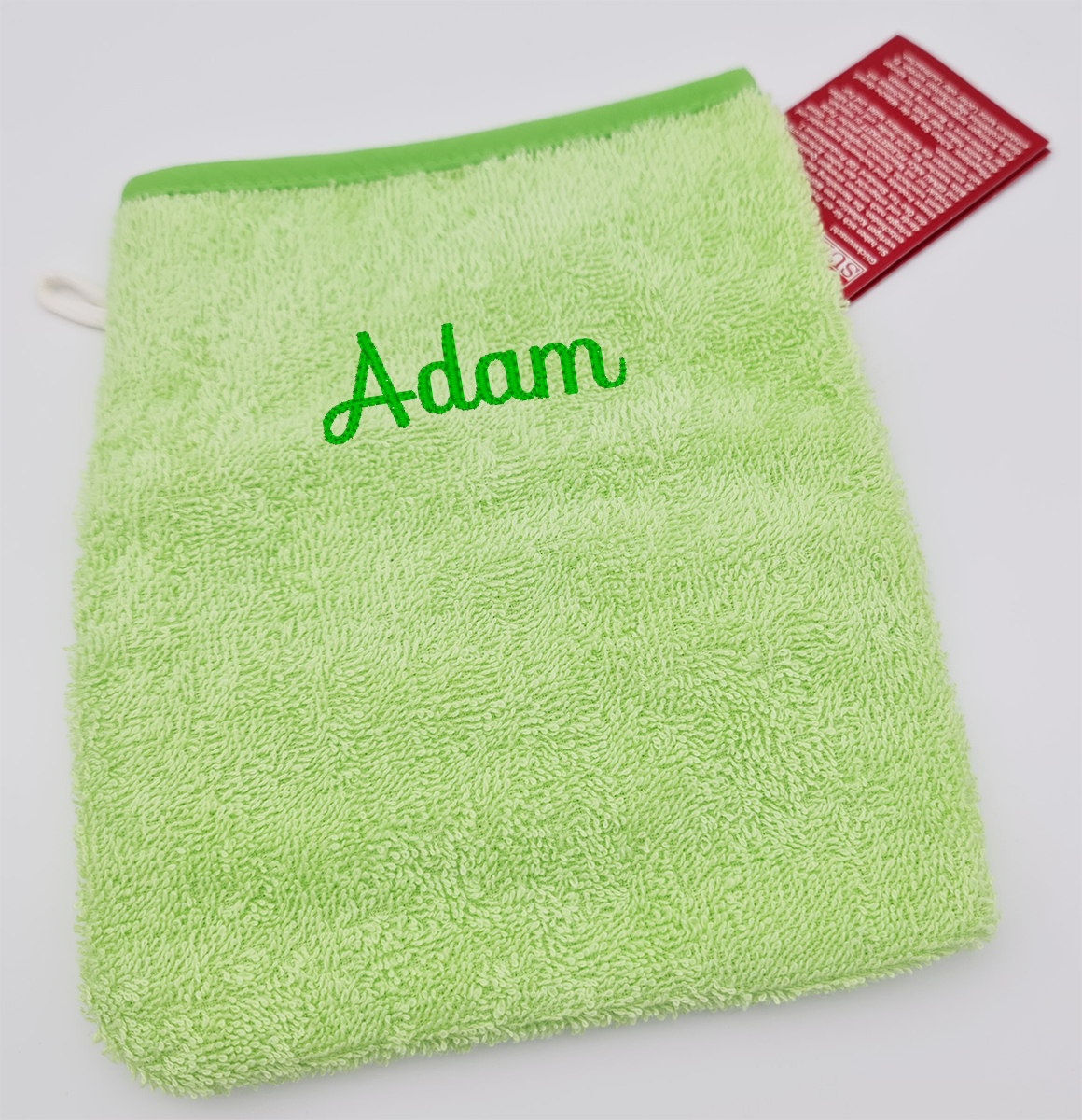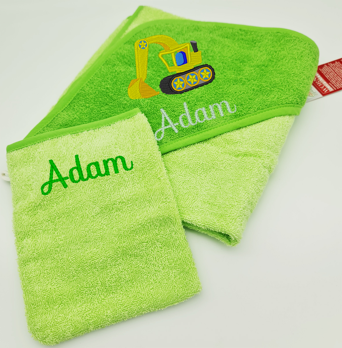 Ergänzen Sie Ihr Kapuzentuch auf Wunsch mit passendem Waschlappen (29,5x29,5cm) oder Waschhandschuh (15x21cm).