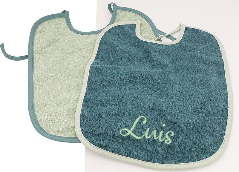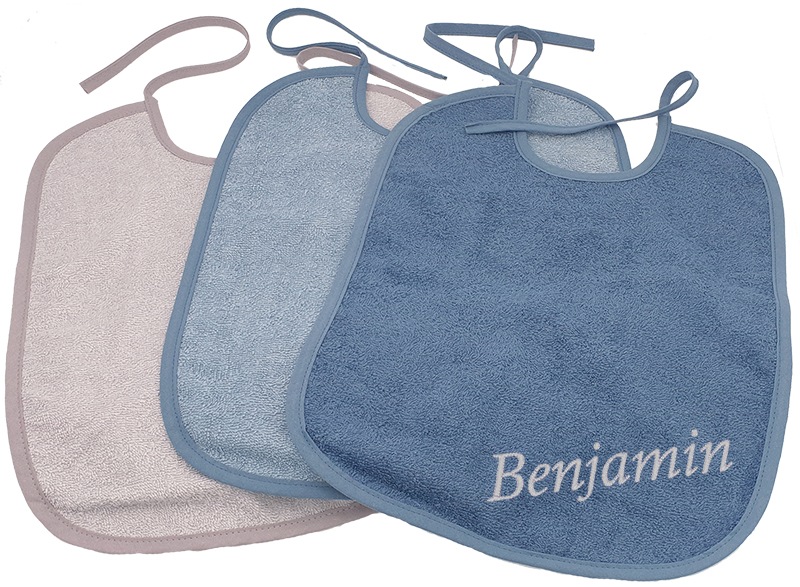 Das Lätzchen ist aus flauschiger Frottierware und wird am Hals gebunden. Ein einklemmen der Haare, wie bei Klettverschluss, ist somit nicht möglich.
