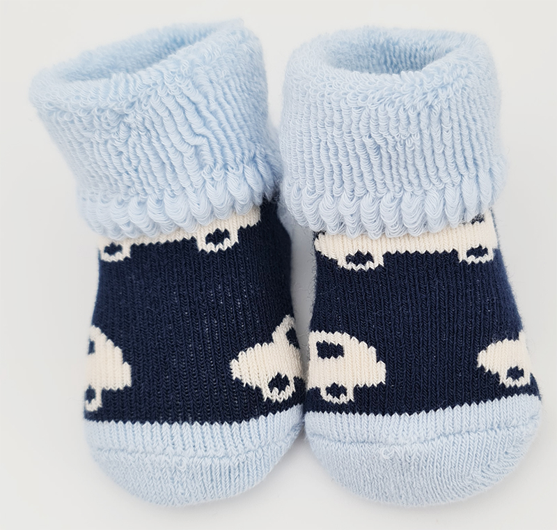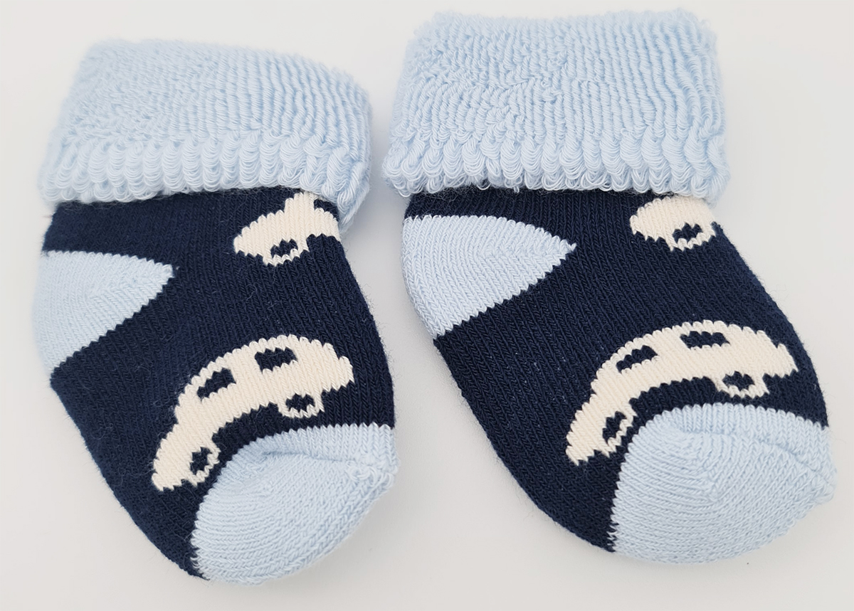 Diese Baby-Erstlingssocken mit Auto-Motiv vereinen Qualität, Funktionalität und Komfort.
