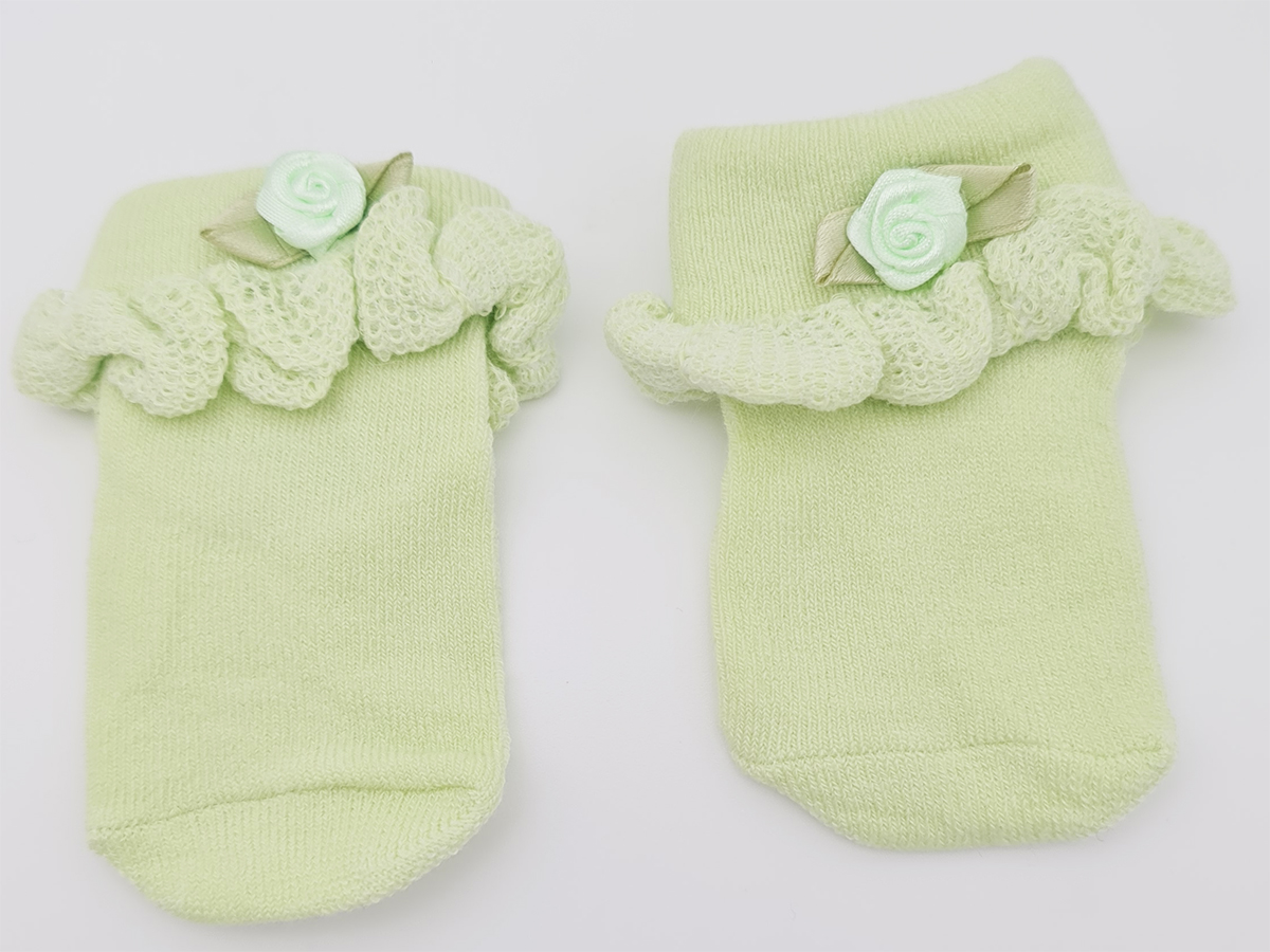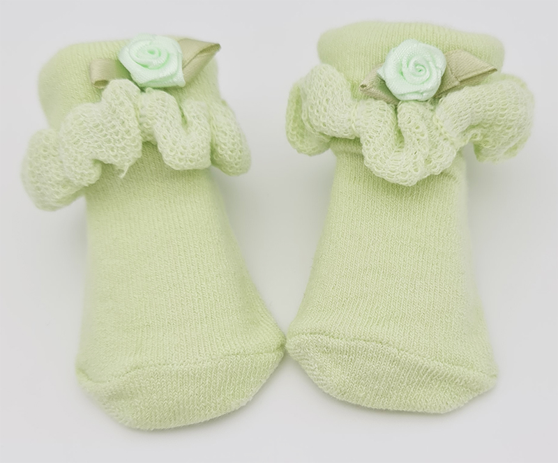 FuersBaby.de personalisierte Geschenke für Babys, Kinder und Erwachsene Diese hellgrünen Erstlingssöckchen bezaubern durch zarte Rüsche und ein süßes Blümchen – ein echter Hingucker für kleine Babyfüße.