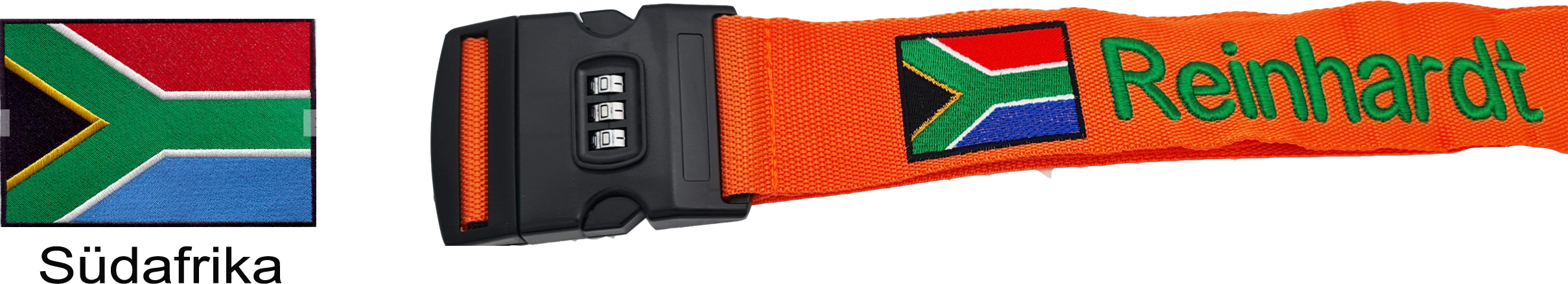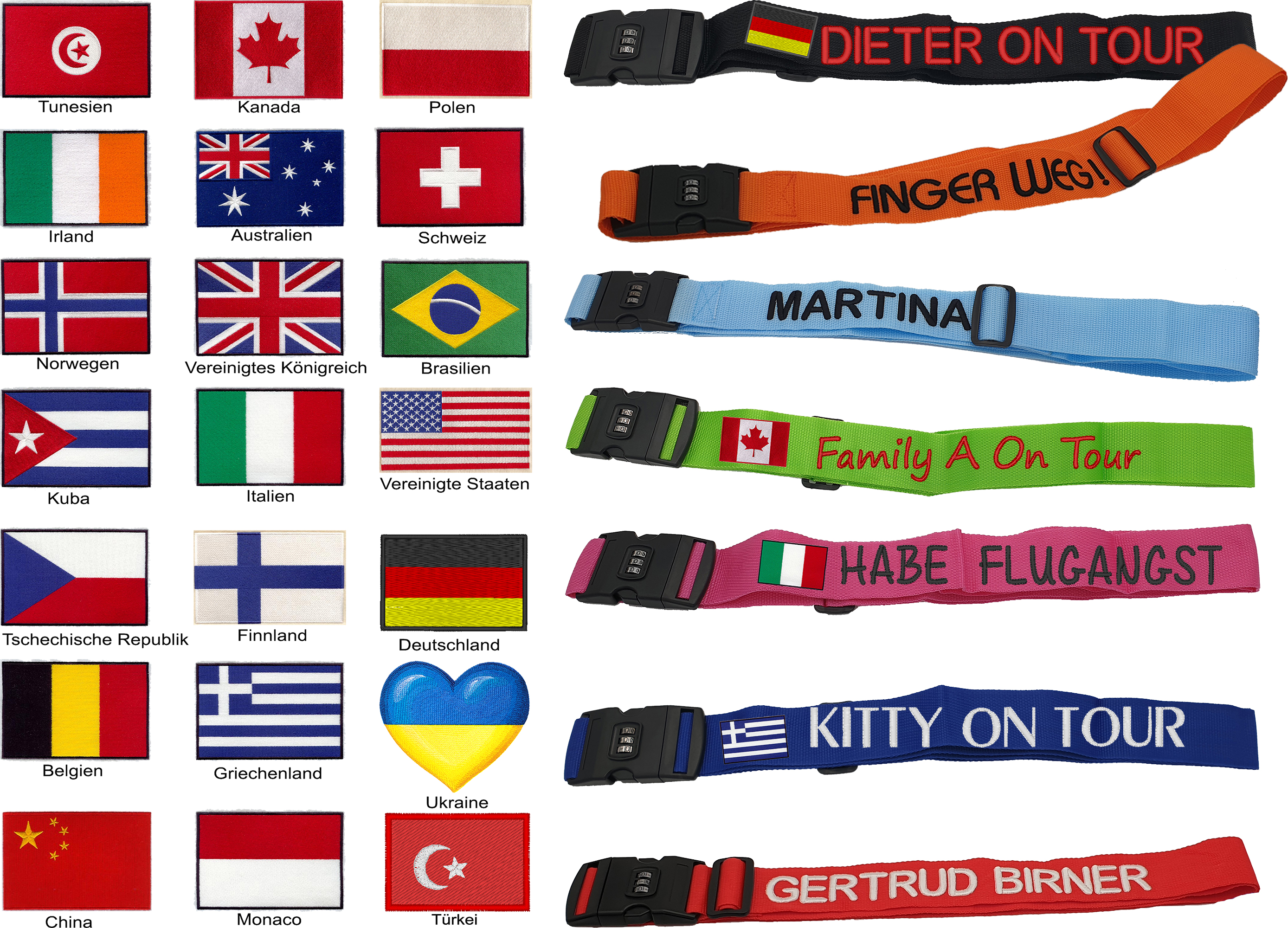 ein personalisiertes Kofferband mit Name und Flagge sorgt immer für mehr Sicherheit und Komfort.