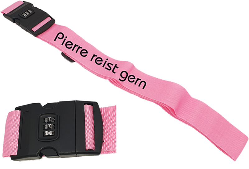 Kofferband mit Zahlenschloss rosa – personalisiert, sicher und komfortabel unterwegs.